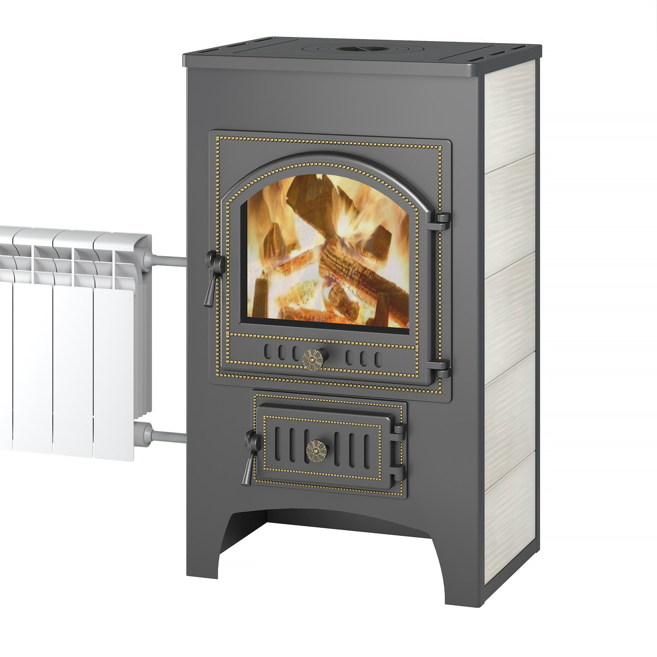 Печь-Камин ВЕЗУВИЙ ПК-01 (205) с плитой и т/о беж. 12 кВт (200 м3) Ø 150 мм
